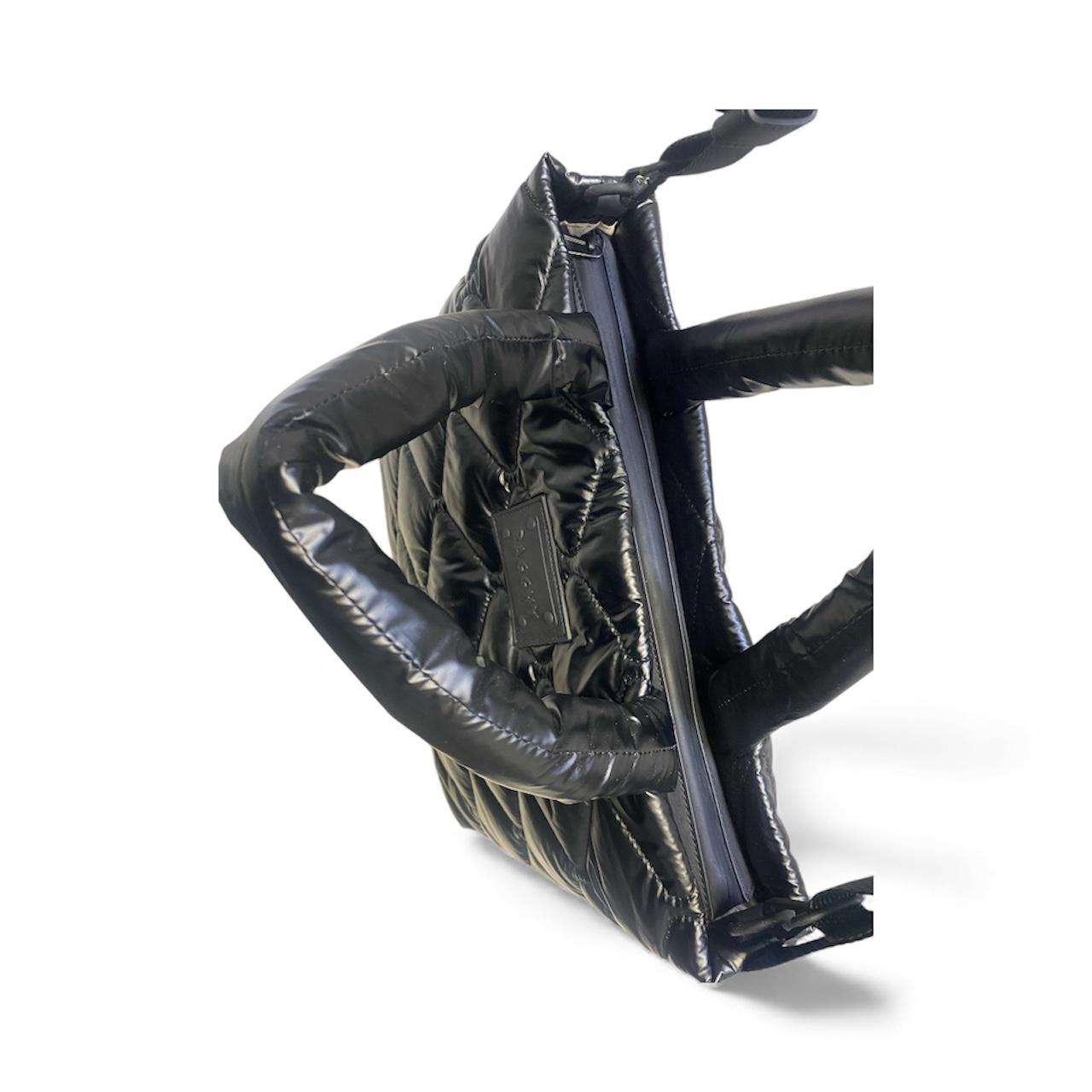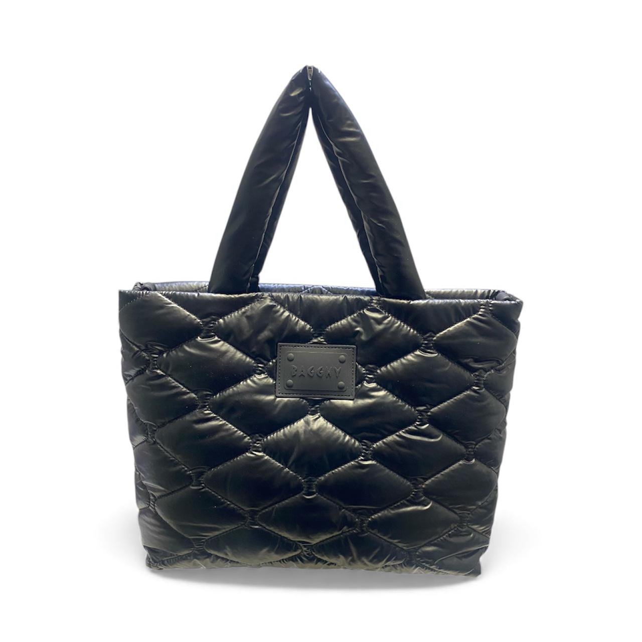 Illumina ogni tuo outfit con questa borsa Bagghy da donna in versione trapuntata, realizzata in materiale effetto nylon nero.