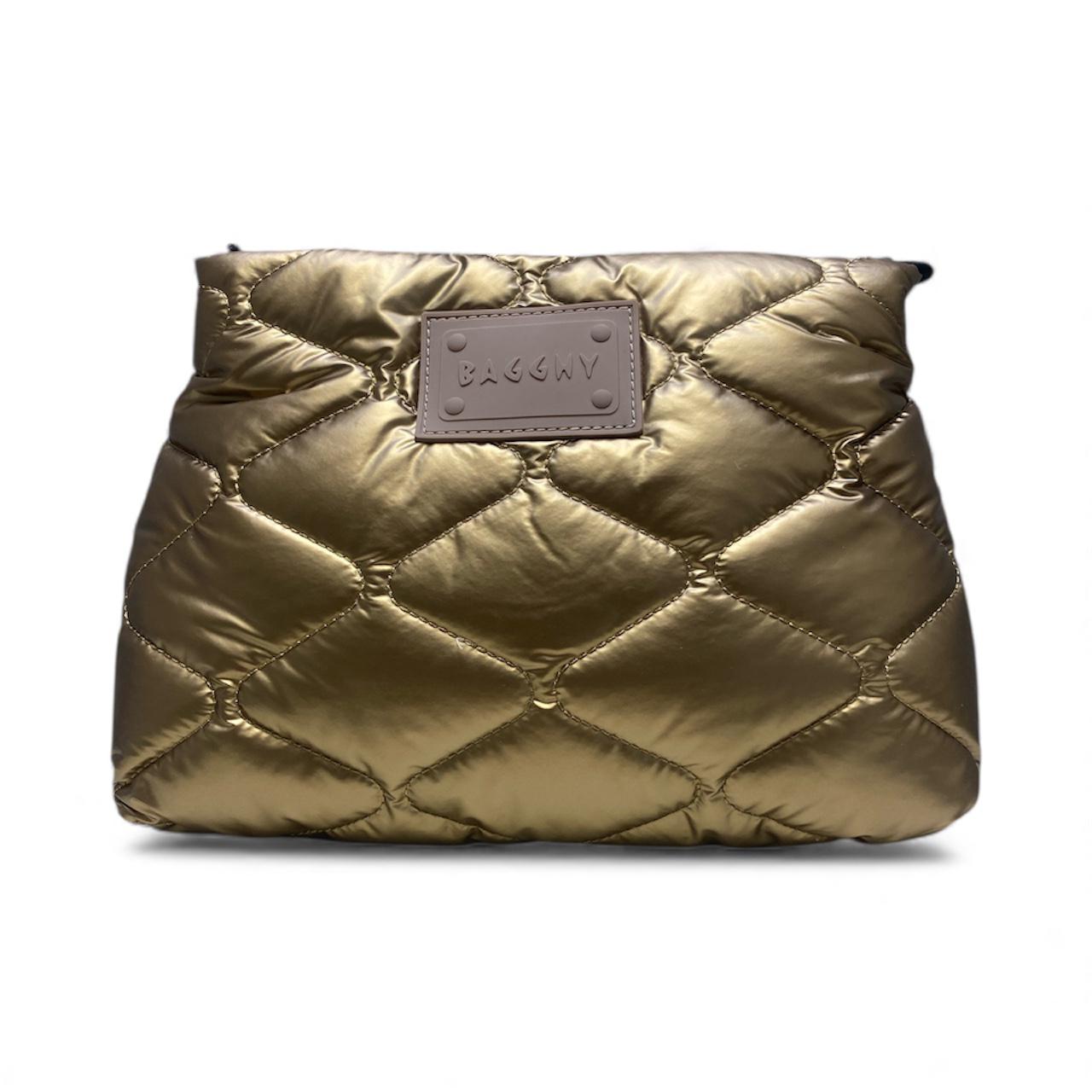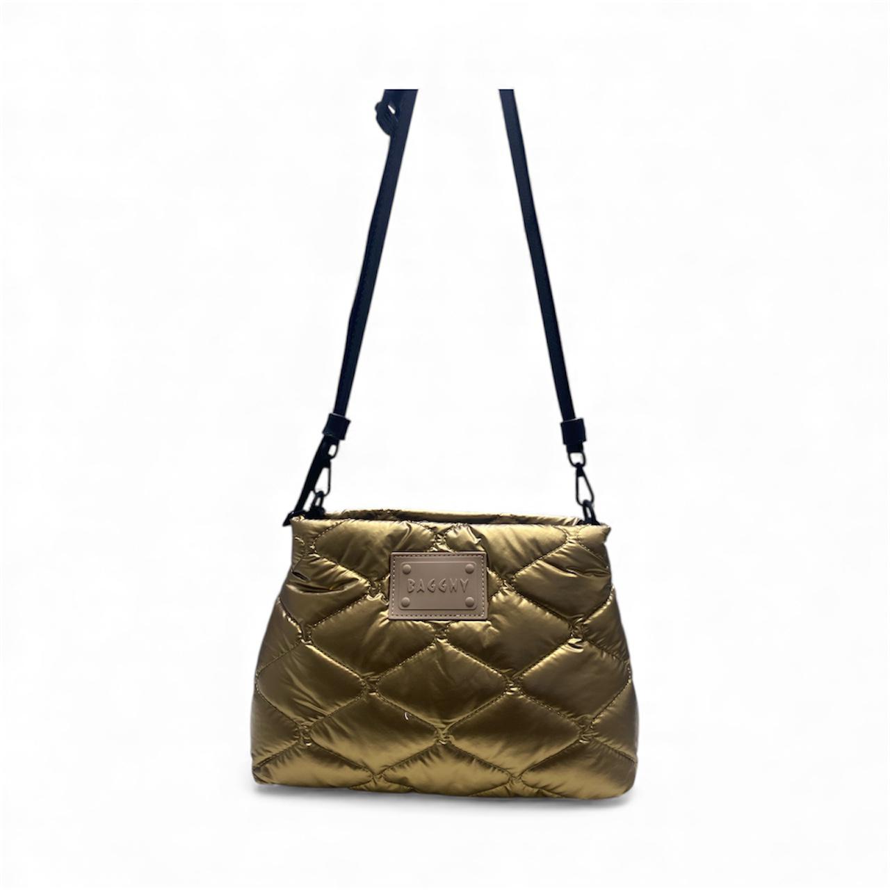 Eleva i tuoi outfit con questa borsa Bagghy da donna in tessuto trapuntato effetto metallico bronzo, un accessorio glamour e leggerissimo, ideale per la stagione autunno/inverno.
