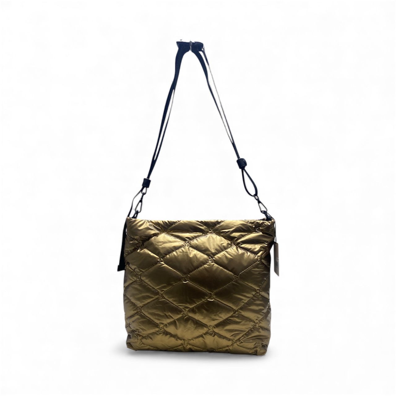 Rendi unico il tuo look con questa borsa Bagghy da donna in tessuto trapuntato effetto metallico bronzo un accessorio luminoso e ultra contemporaneo, perfetto per dare carattere ai tuoi outfit quotidiani.