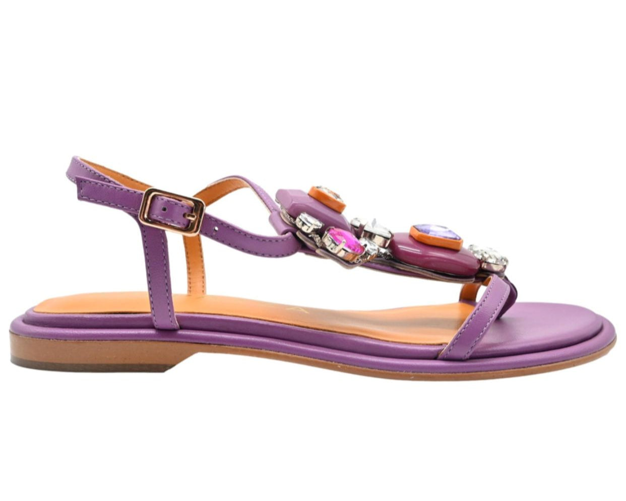 I sandali donna Apepazza sono un’opzione elegante e versatile per la stagione estiva. Realizzati in vera pelle di alta qualità, questi sandali si distinguono per il loro vivace colore lilla e per le pietre multicolore che decorano la tomaia, aggiungendo un tocco di originalità e stile.