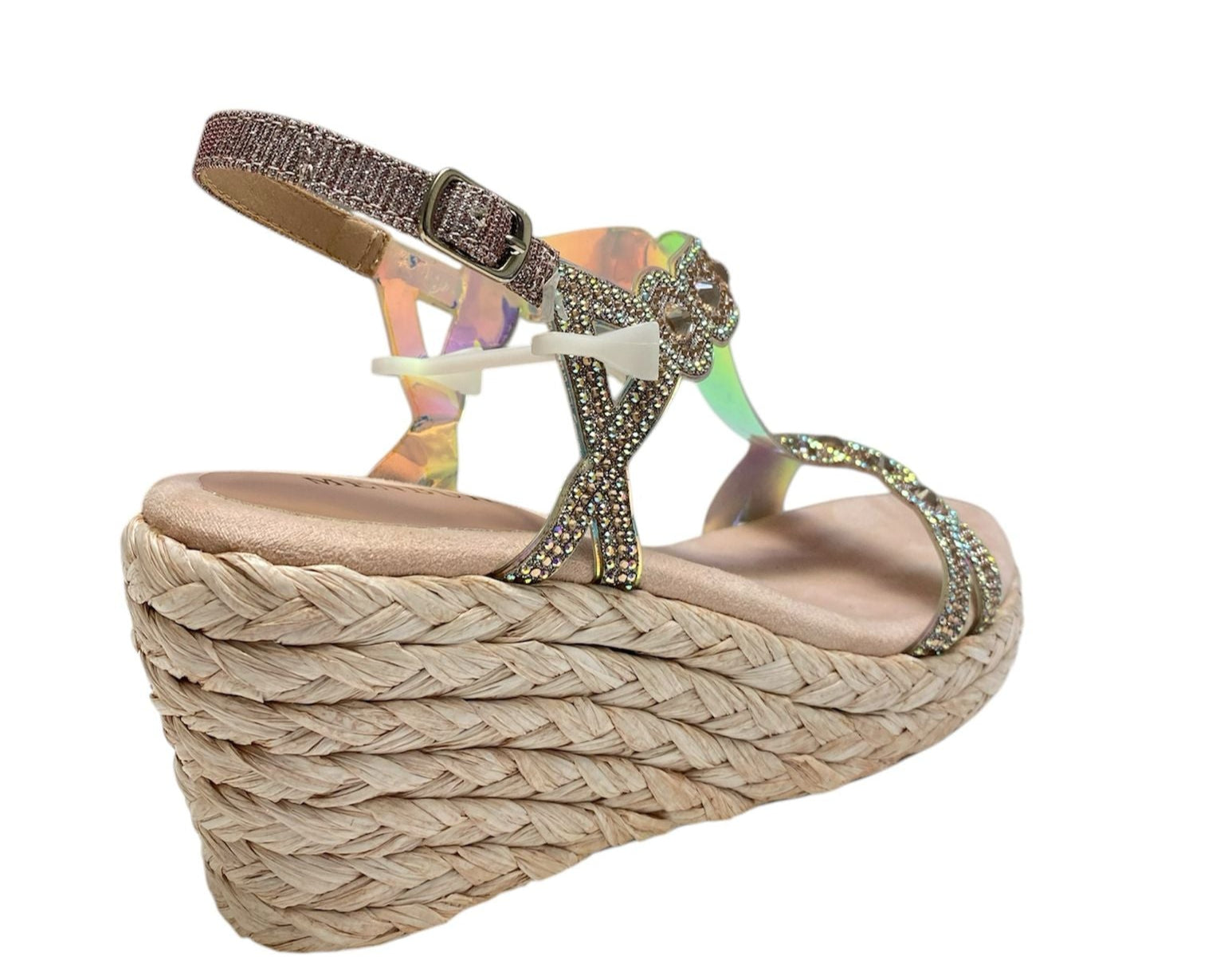 SANDALI ZEPPA "MENBUR" PRIMAVERA ESTATE 2025 RAFIA + STRASS ROSA 23661