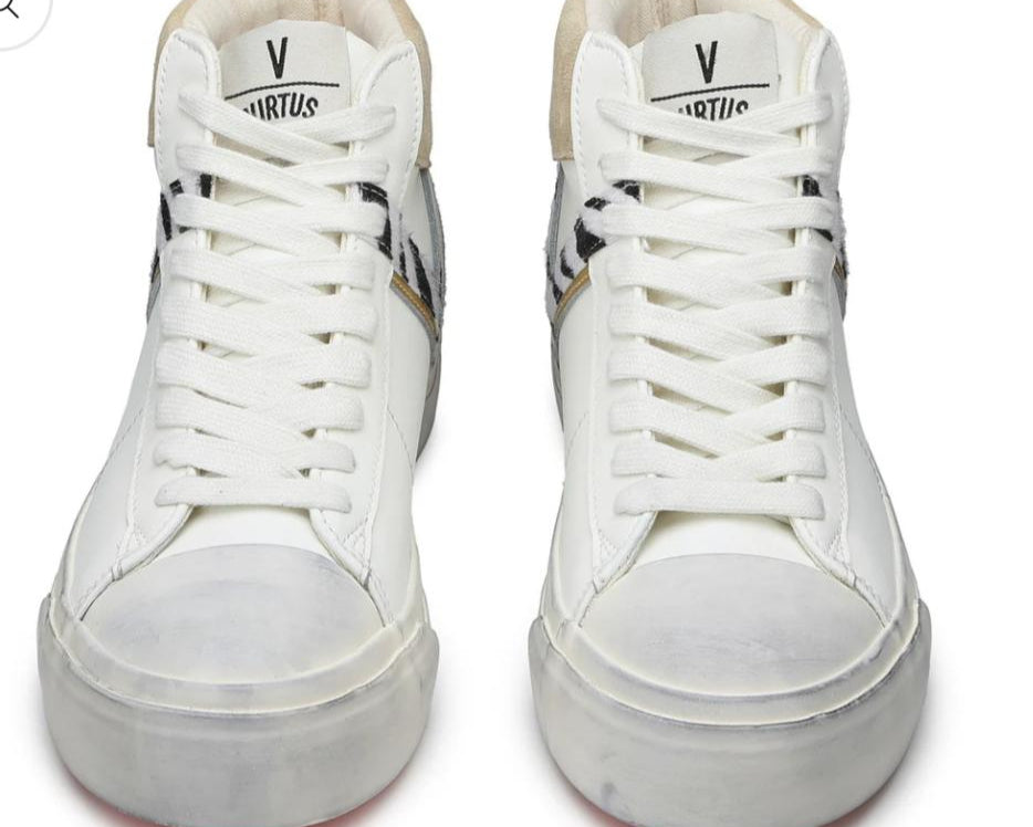 Sneakers Donna “VIRTUS PALESTRE” Rubby Mid Leather/Suede Bianco/Beige-zebra