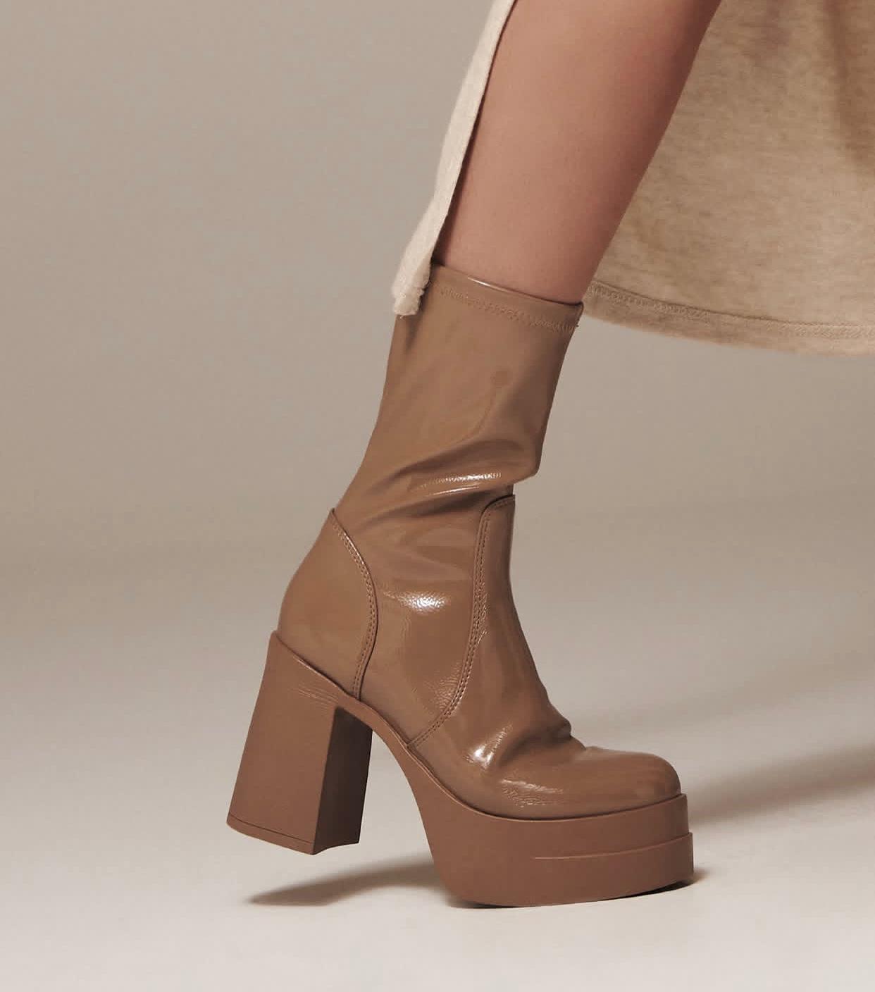 Stivaletto elasticizzato Apepazza Vernice Beige con plateau e tacco largo